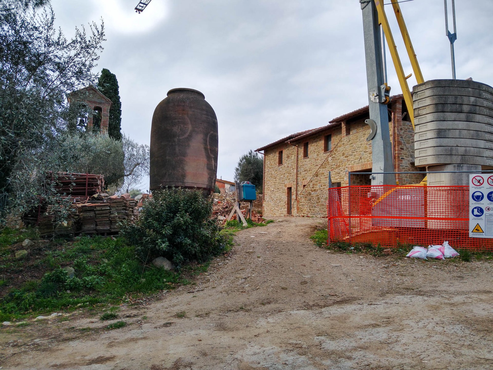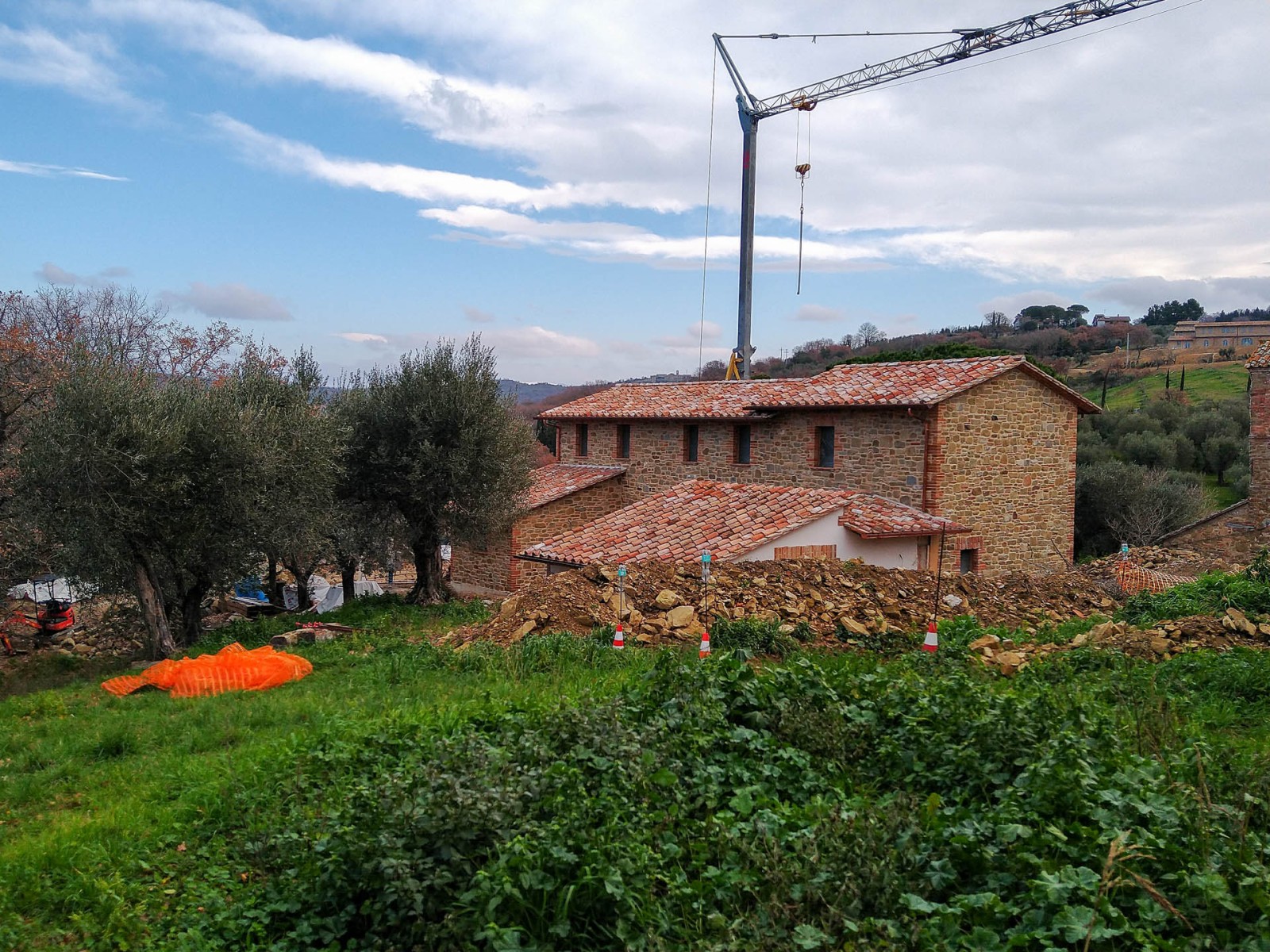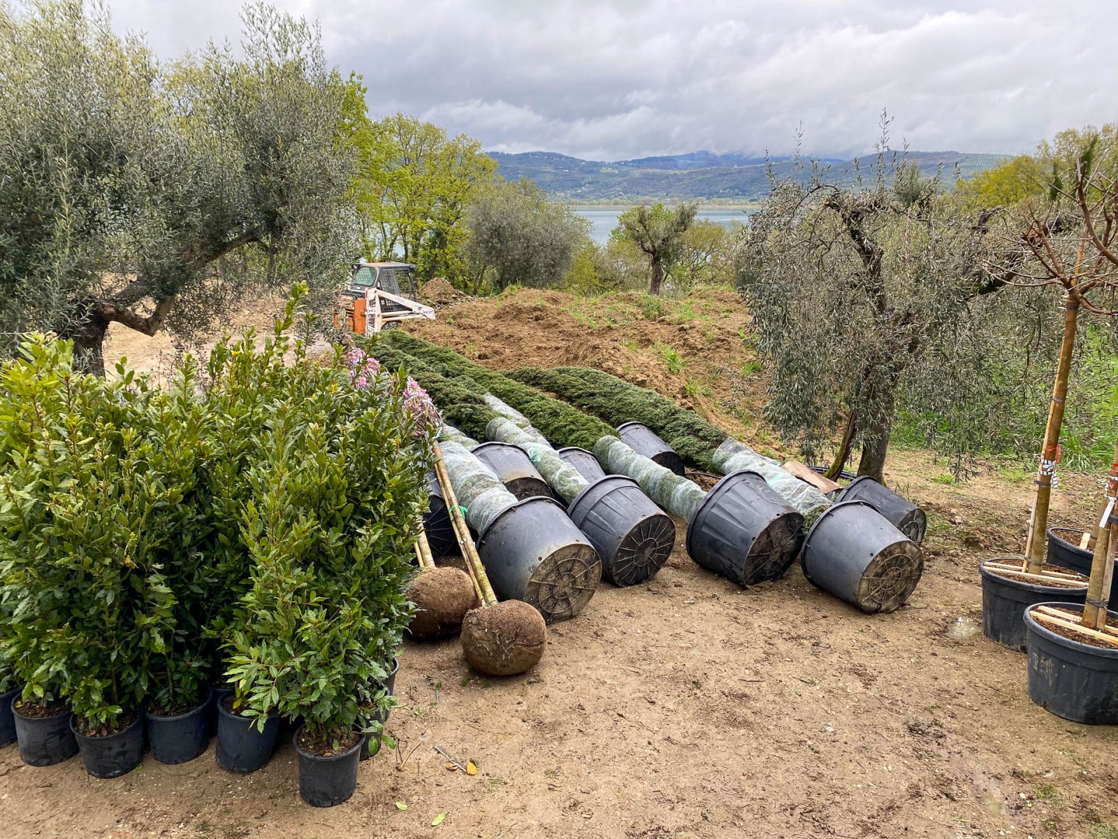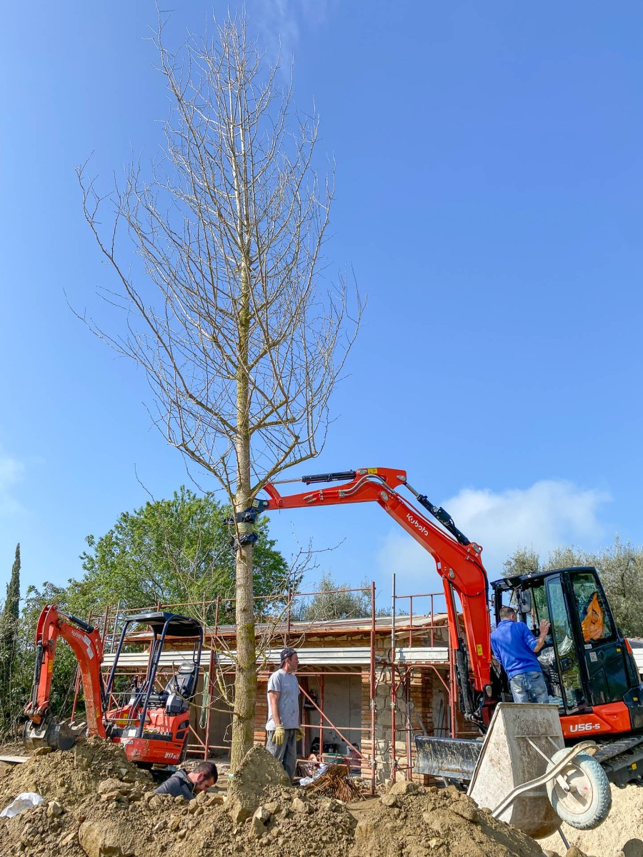 Questo giardino semplice e lineare è stato pensato per rispondere principalmente alla funzionalità dell’opera e alla necessità di risparmiare acqua: l’agriturismo da marzo a ottobre non conosce un giorno di day off e i giardinieri in questo periodo, devono essere in grado di gestire con un unico intervento a settimana la sua manutenzione. Le aree a prato irriguo sono state limitate alle sole zone intorno all’edificio e alla piscina dove si è scelto di mettere a dimora prati pronti a prevalenza di Festuca arundinacea e Poa pratensis; si è anche optato, nelle stesse zone per la sub-irrigazione, ciò ha un duplice vantaggio: permettere agli ospiti di lasciare asciugamani, cuscini e altri oggetti senza il rischio di trovarli bagnati l’indomani e riduce la presenza di zanzare e di chironomidi, quest’ultimi massivamente presenti nella zona del Lago Trasimeno.