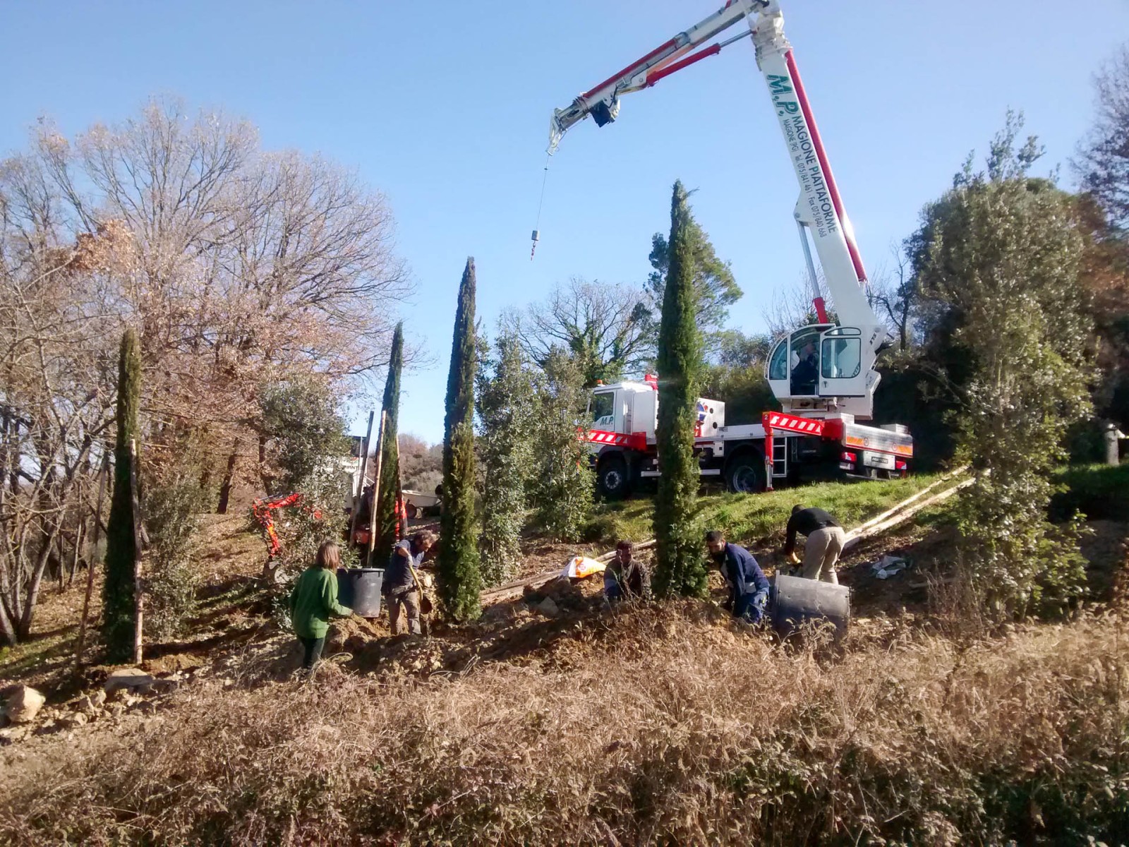 La base arbustiva è costituita da Nerium oleander, Arbutus unedo, Laurus nobilis, Elaeagnus ebbingei, Teucrium fruticans, Viburnum x burkwoodii e Lagerstroemia indica. Sul piano inferiore: Rosa Sally Holmes, Rosmarinus officinalis Boulè, Stipa tenuissima.